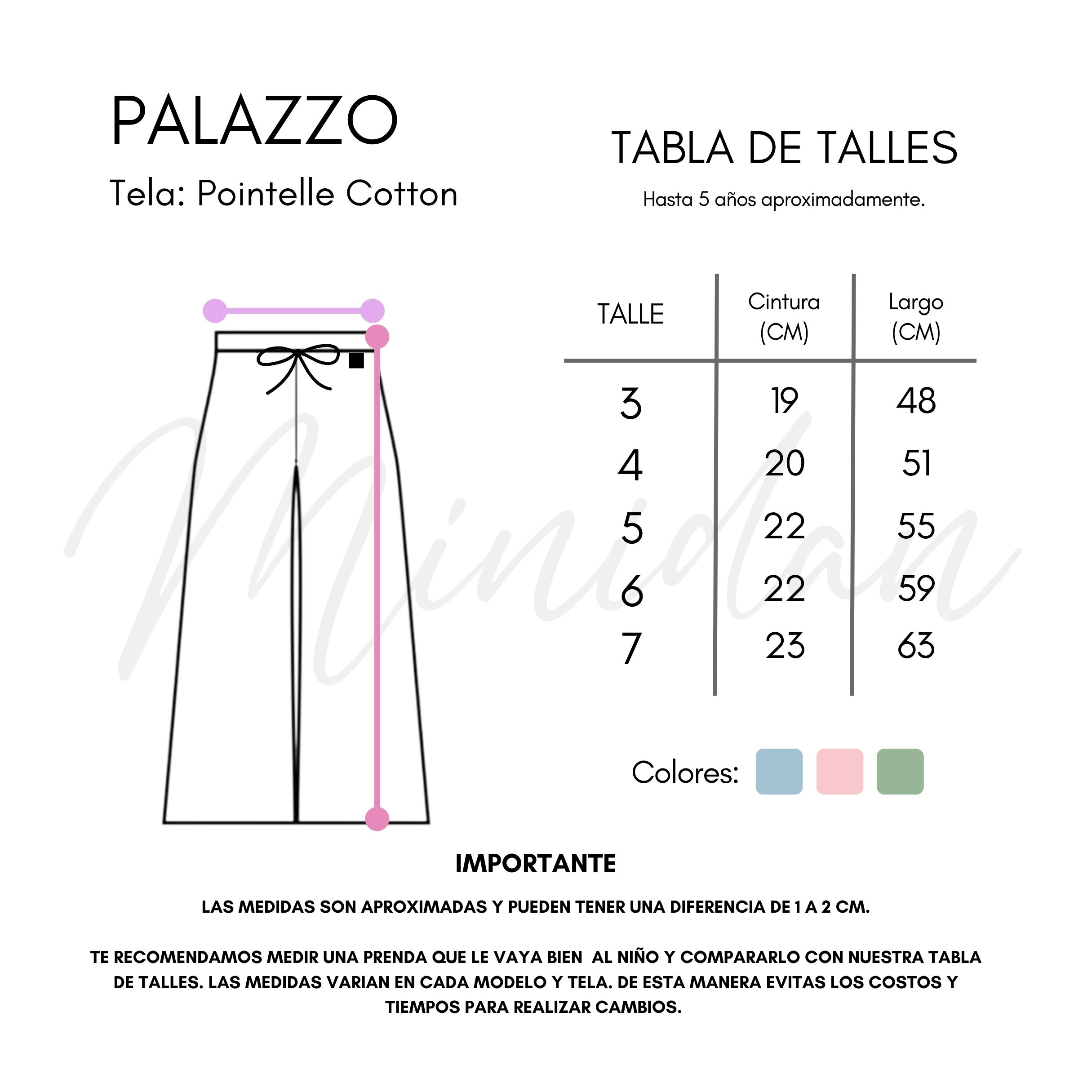Palazzo Pointelle Cotton con un estampado de flores delicadas, confeccionado en un tejido de punto ligero y delicado que se caracteriza por sus pequeños patrones de agujeros o espacios calados, creando un diseño repetido similar a un bordado integrado, le otorga una textura etérea y una caída suave, ideal para el confort diario.